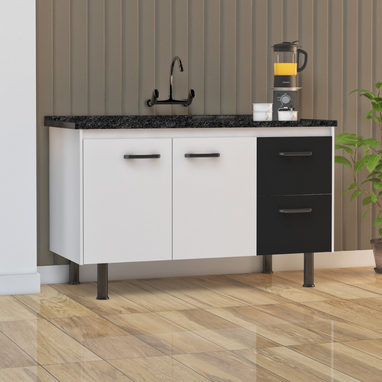 O Gabinete é ideal para você que procura qualidade, bom preço e funcionalidade para sua cozinha. O gabinete possui puxadores em ABS, pés em polipropileno, dobradiças de pressão e gavetas com corrediças telescopicas, para você guardar panelas e louças.