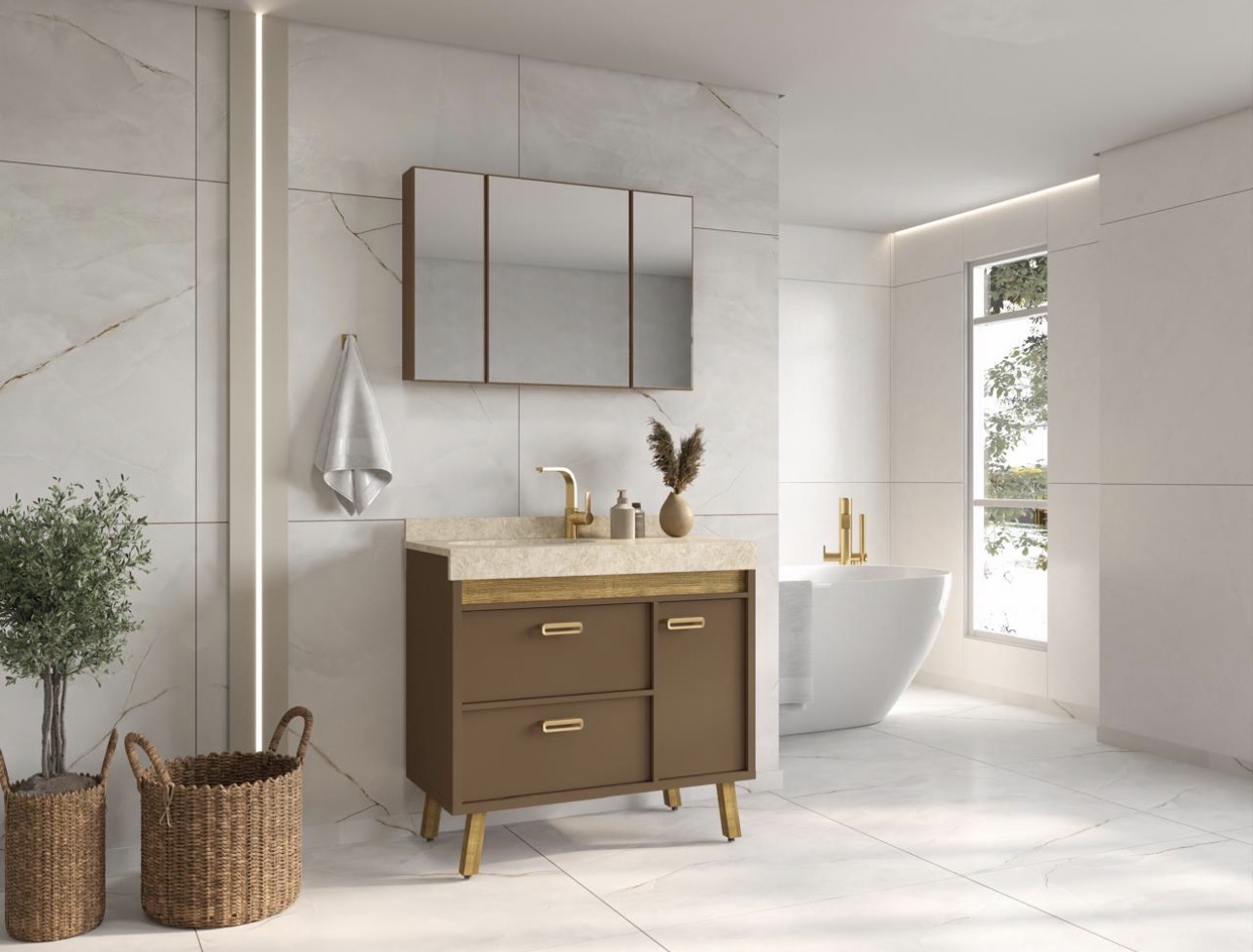 Itens na caixa – 01 Gabinete – 01 bancada - 01 cuba - 01 Espelheira