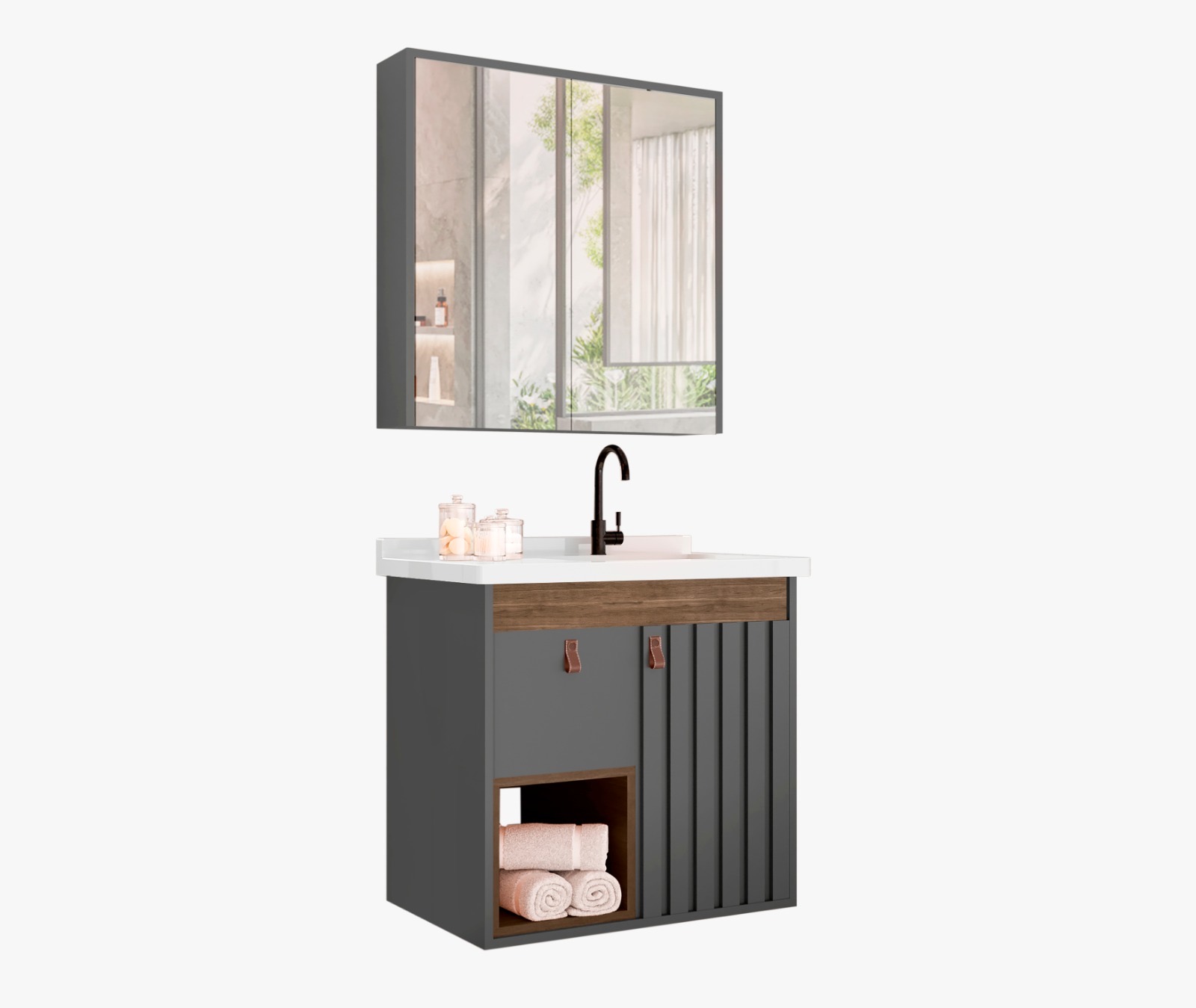 Kit gabinete, Cuba e Espelheira 0.60MT Grafite/Avelato 49724