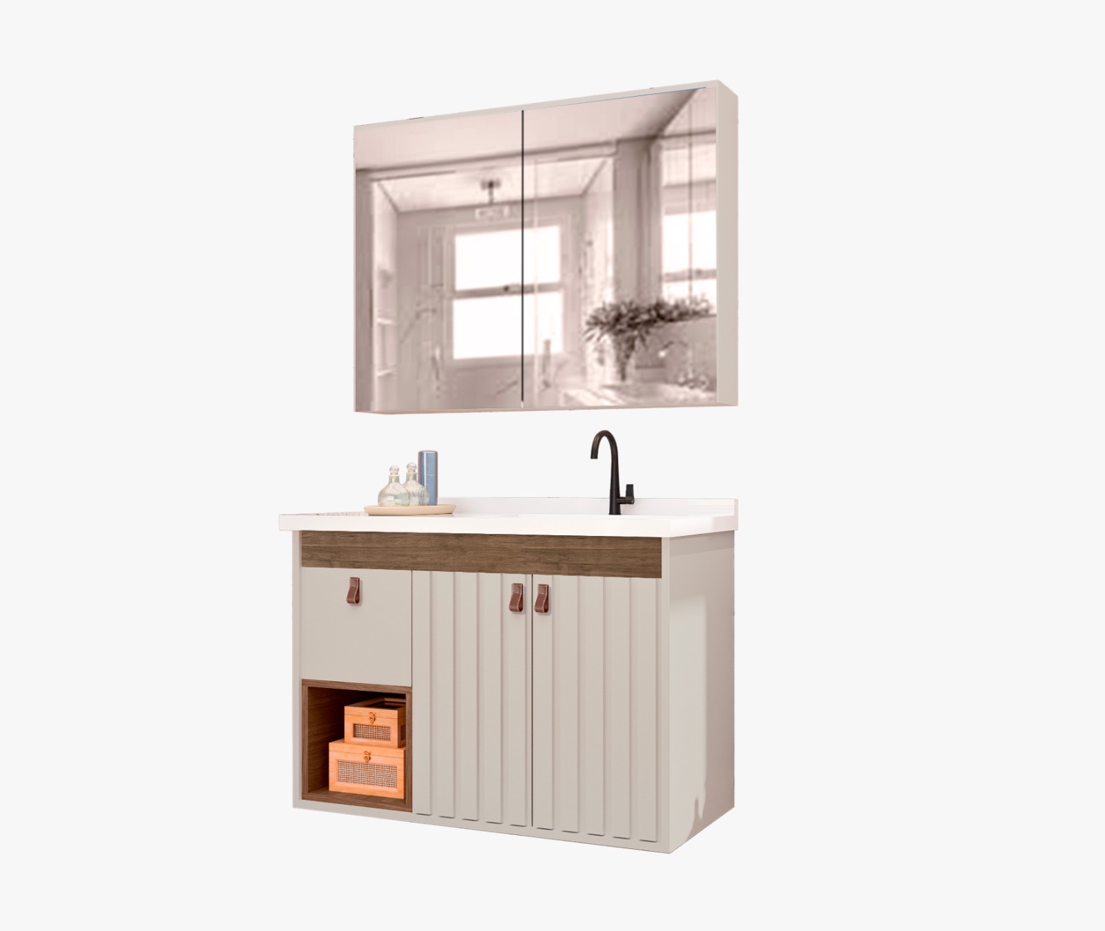 • Gabinete e Espelheira em MDP – resistente, durável e acabamento.