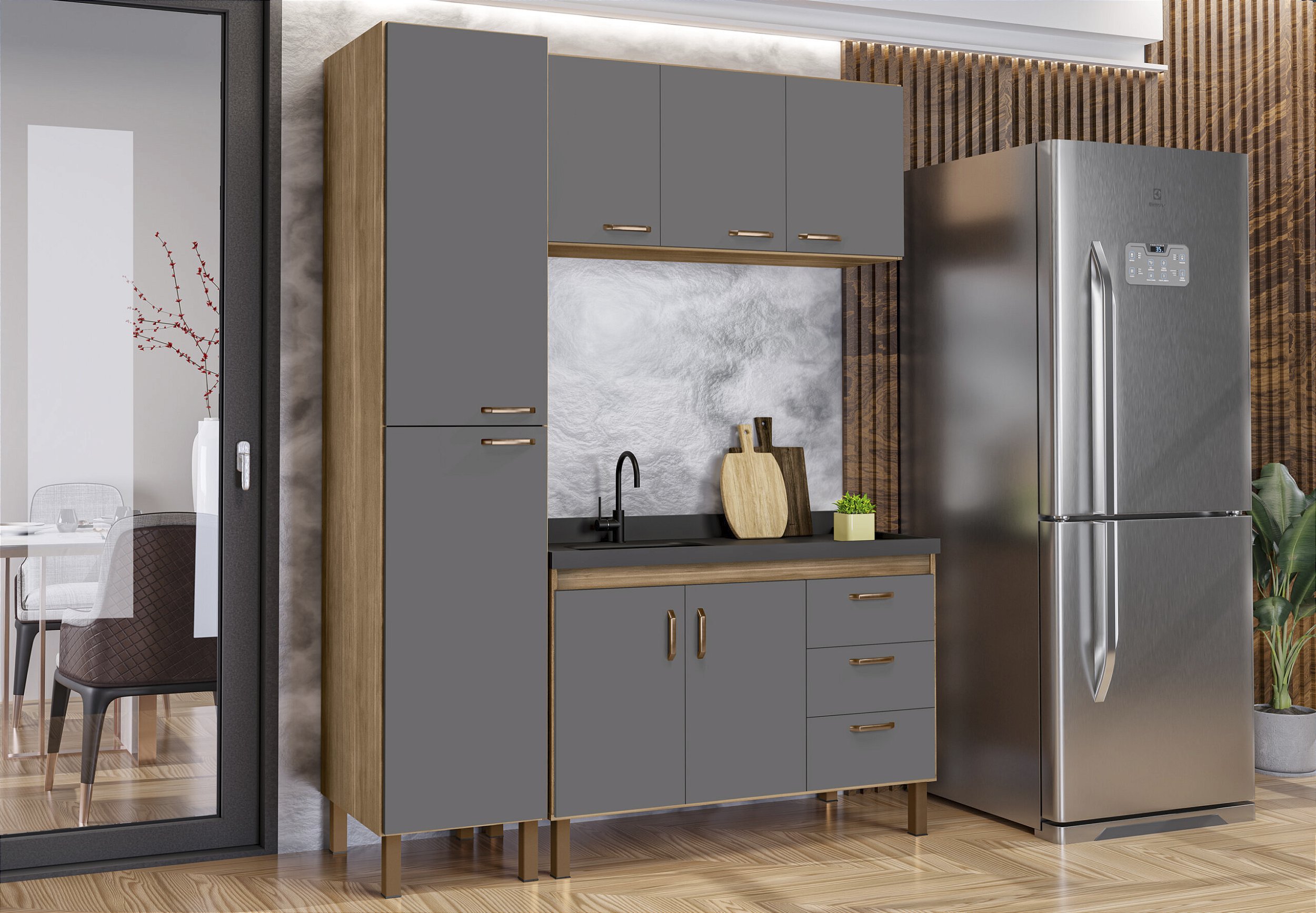 Kit Gabinete 472344+ Aereo + Paneleiro Avelato/Cinza 1.44MT