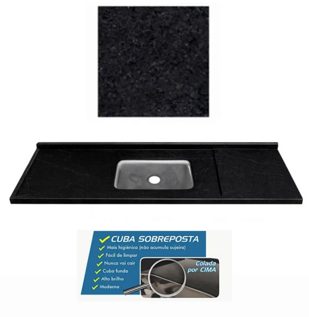 Pia granito Preto Aracruz Cuba funda/sobreposta/acabamento duplo/Parte seca 2.00MT