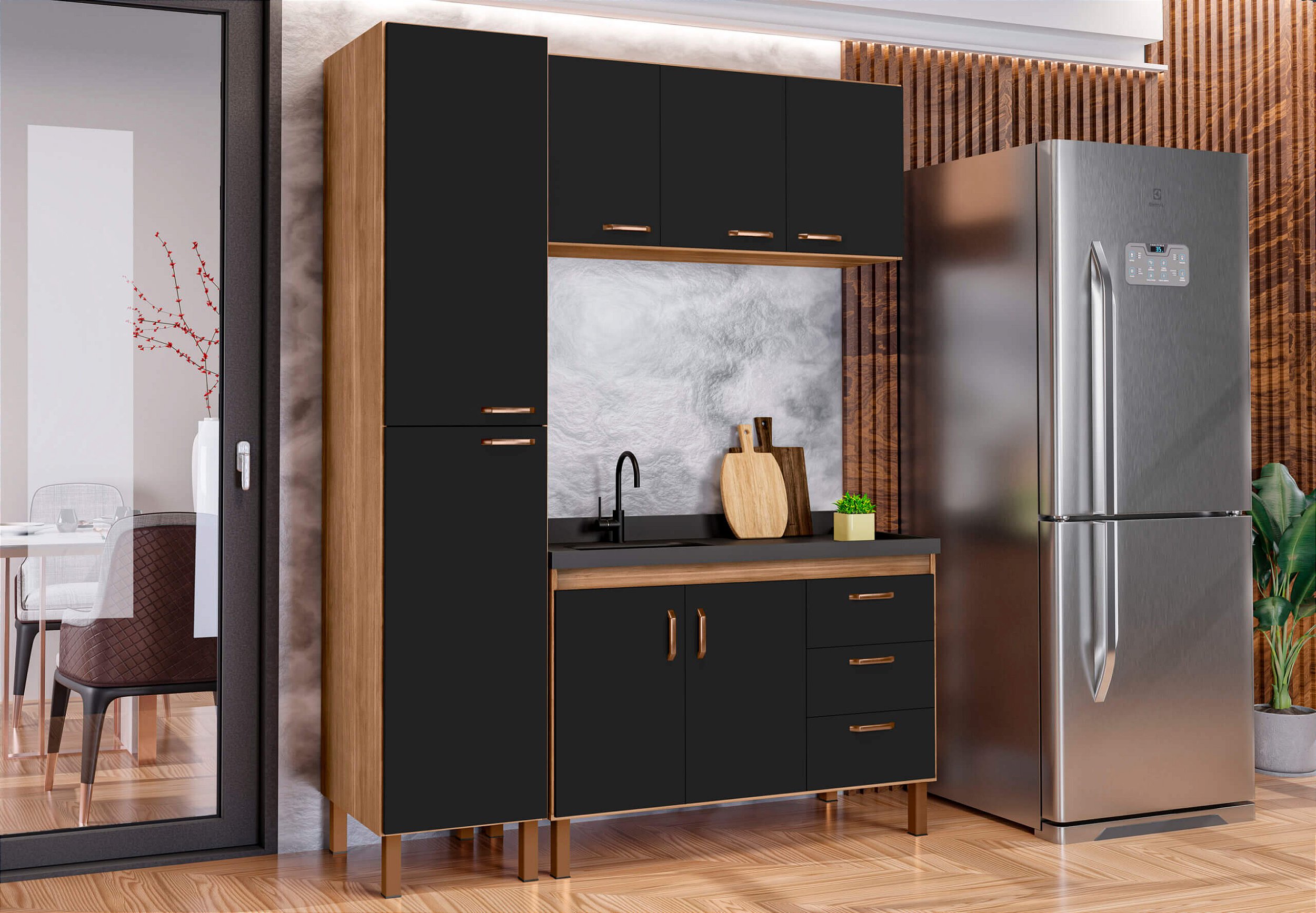 Kit Gabinete 472224+ Aereo + Paneleiro Avelato/Preto 1.14MT